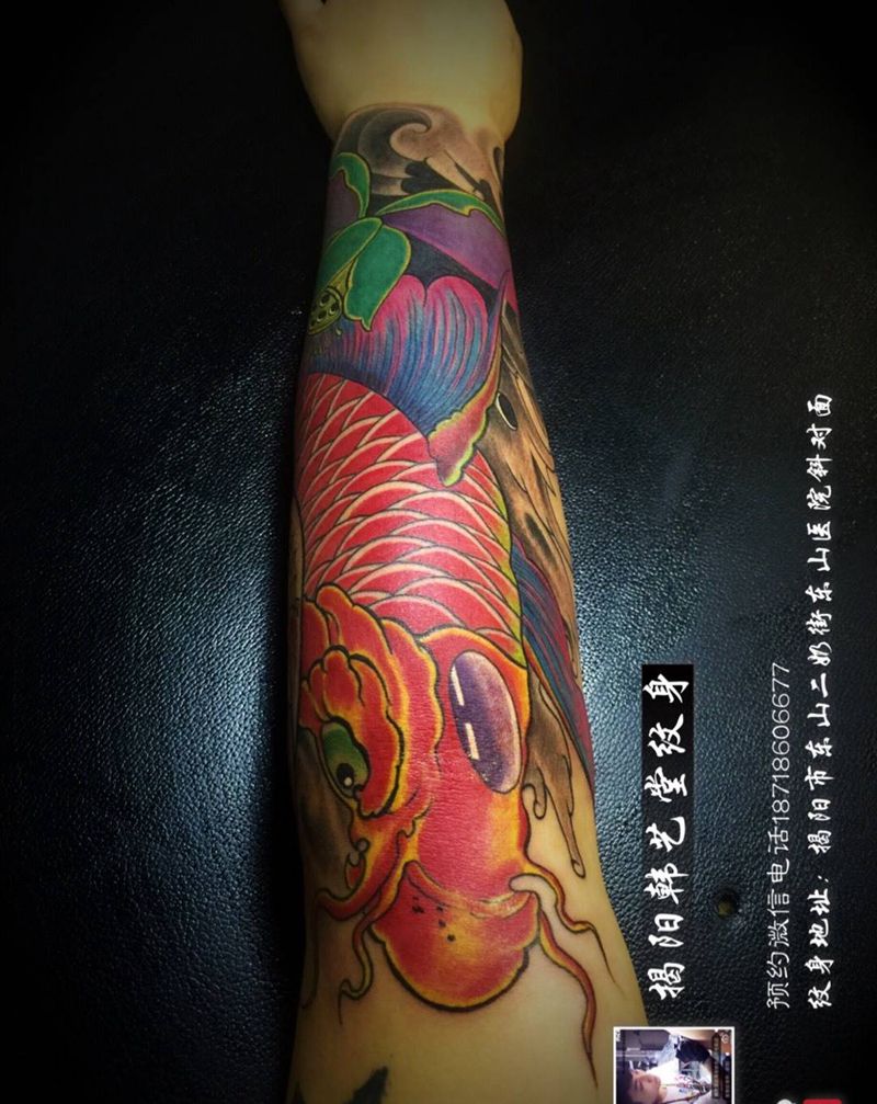 当前位置: 首页 >广东省揭阳市纹身店-揭阳韩艺堂纹身旗舰店纹身图案>手臂传统彩色鲤鱼。纹身图片