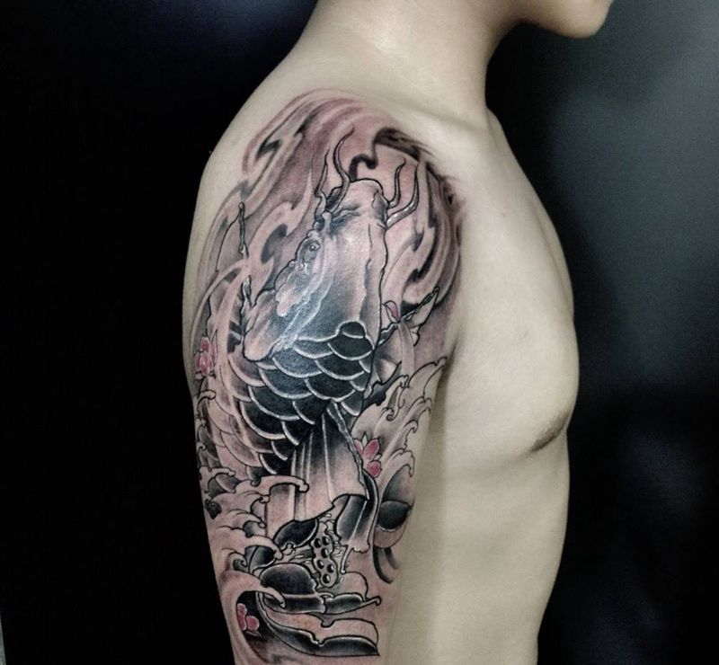 当前位置: 首页 >广东省揭阳市纹身店-揭阳韩艺堂纹身旗舰店纹身图案>手臂鲤鱼纹身图片