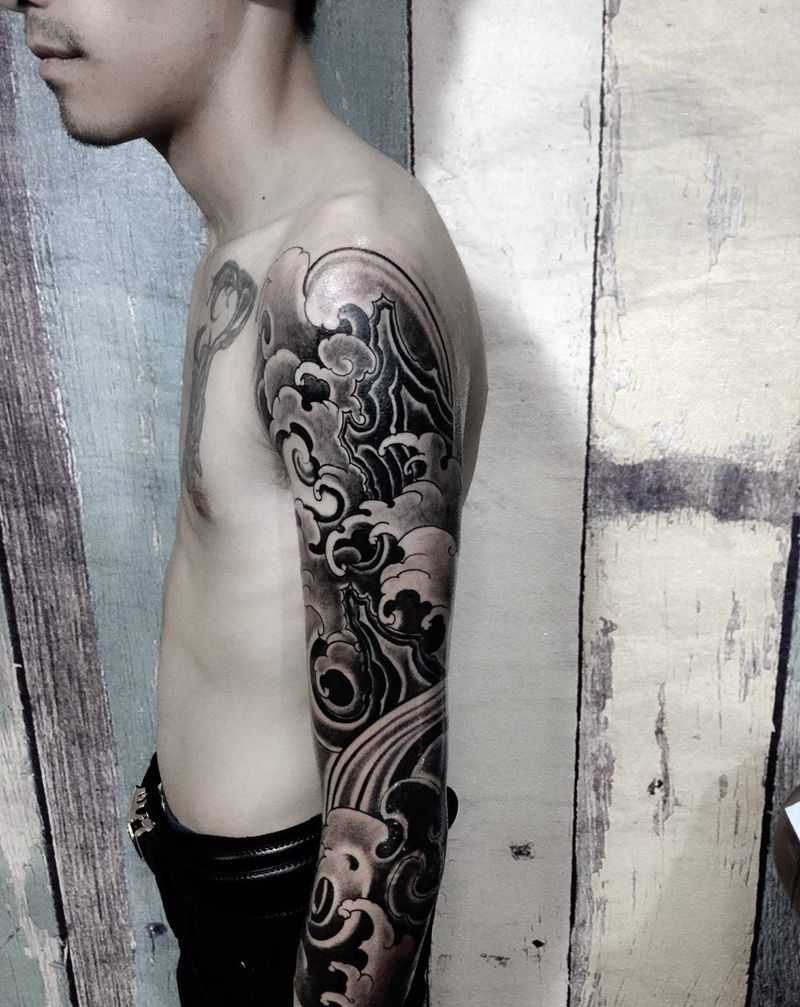 当前位置: 首页 >广东省揭阳市纹身店-揭阳韩艺堂纹身旗舰店纹身图案>七分袖,水浪纹身图片