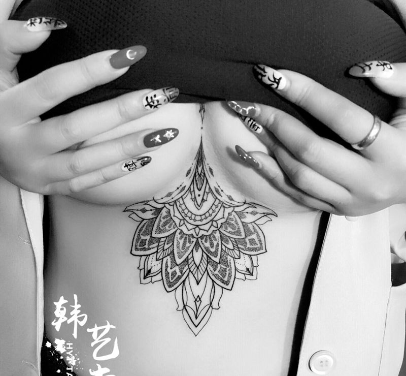 • 女性大花胸纹身_43张霸气漂亮的女性大花胸纹身图案作品