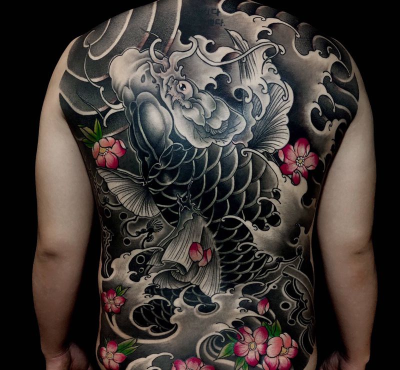 当前位置: 首页 >广东省揭阳市纹身店-揭阳韩艺堂纹身旗舰店纹身图案>传统满背鱼纹身图片_背部老传统纹身图案