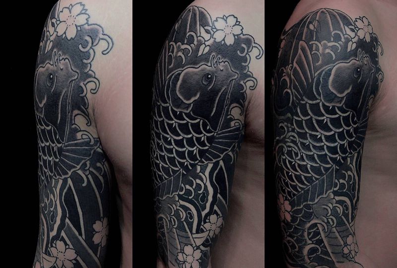 黑灰满背纹身图案