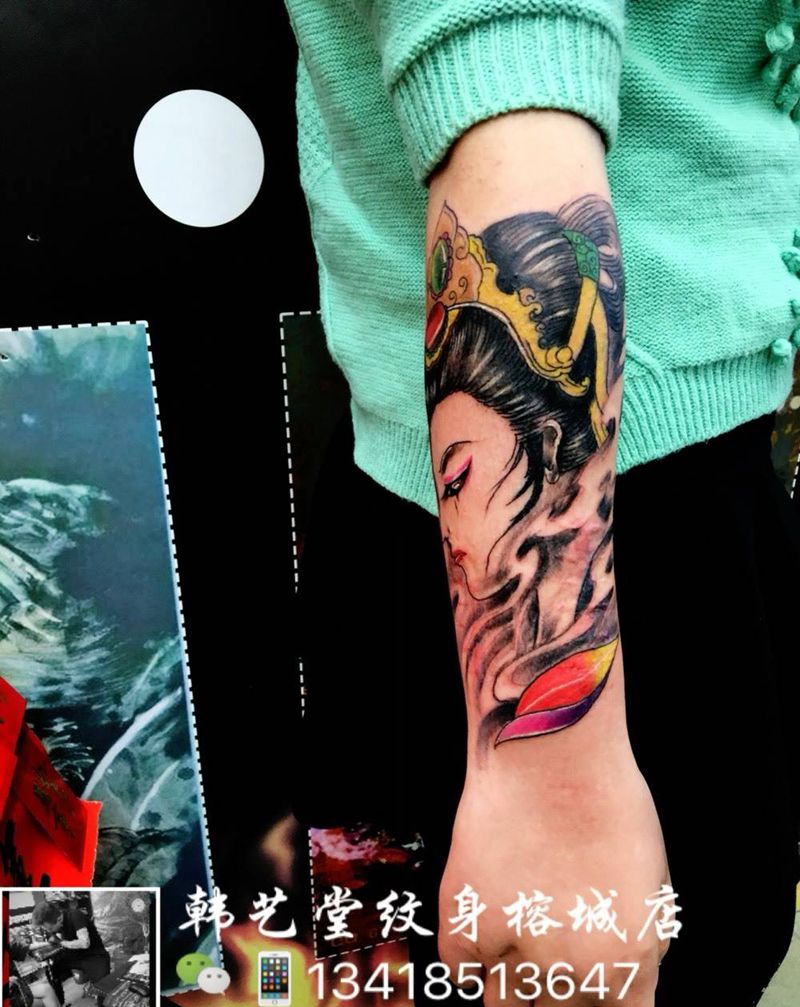 当前位置: 首页 >广东省揭阳市纹身店-恩刺青纹身纹身图案>艺妓遮盖疤痕纹身图片