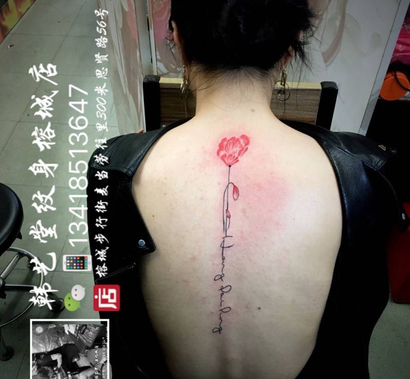 当前位置: 首页 >广东省揭阳市纹身店-恩刺青纹身纹身图案>小清新花纹身图片_成品背部清新植物字符纹身图案
