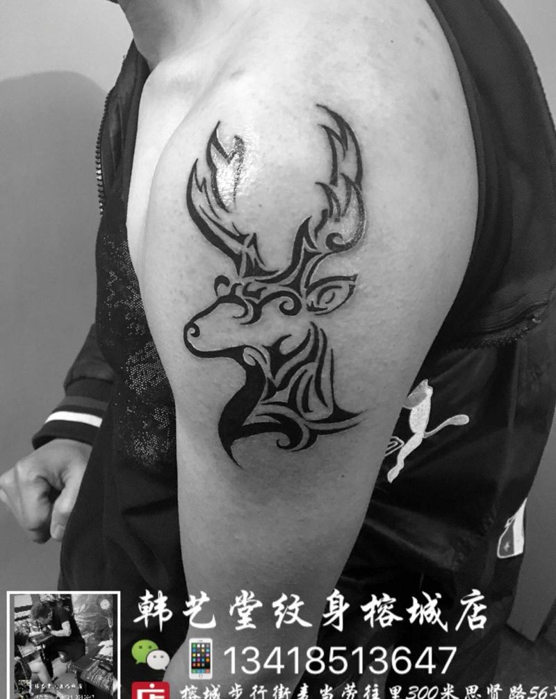 当前位置: 首页 >广东省揭阳市纹身店-恩刺青纹身纹身图案>小清新鹿头纹身图片_成品手臂清新动物图腾纹身图案