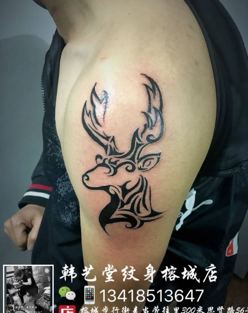 当前位置: 首页 >广东省揭阳市纹身店-恩刺青纹身纹身图案>小清新鹿头纹身图片_成品手臂清新动物图腾纹身图案