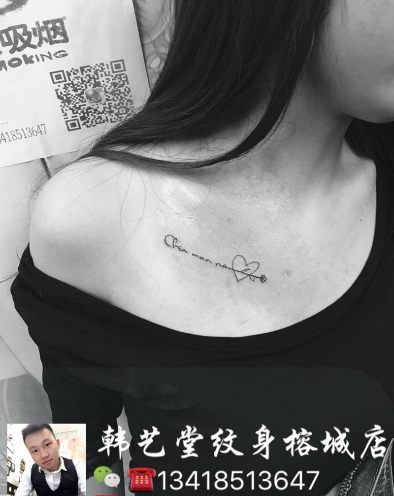 锁骨小清新纹身图片_成品胸部清新字符纹身图案
