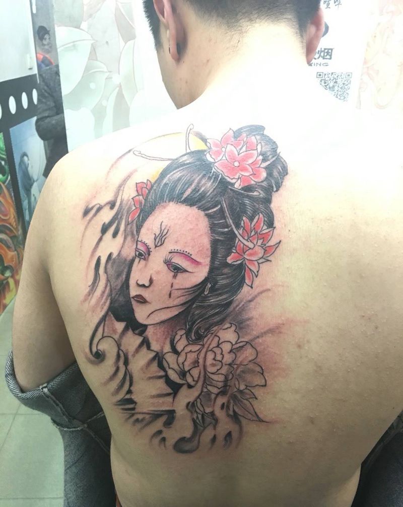 当前位置: 首页 >广东省揭阳市纹身店-恩刺青纹身纹身图案>艺妓纹身图片_成品背部传统人物纹身图案