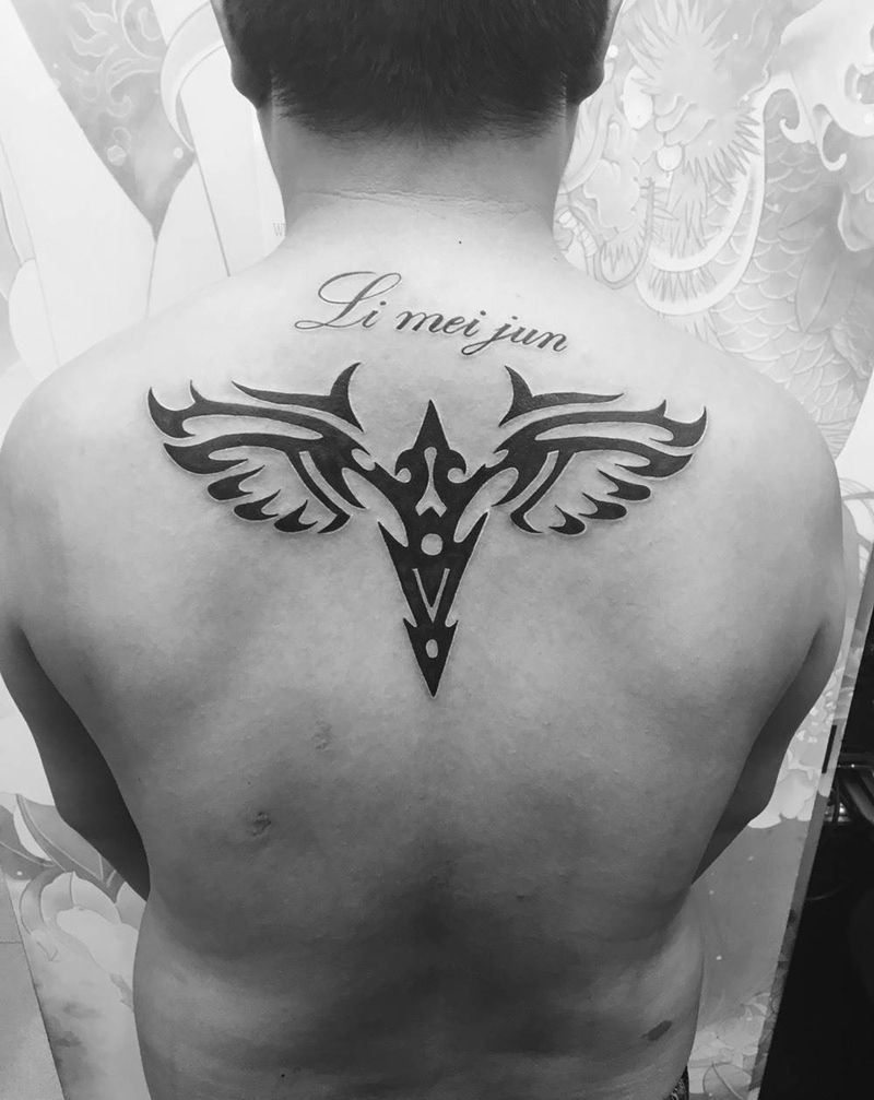 后背图腾纹身图片_成品背部传统字符图腾纹身图案