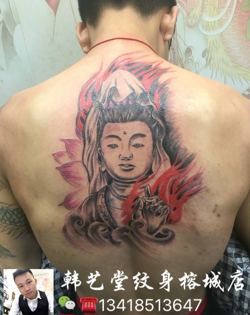 观音纹身图片_成品背部传统人物鬼神宗教纹身图案