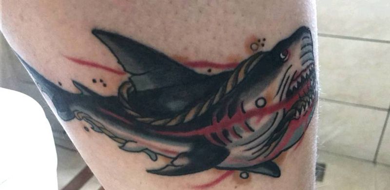 • T网红王老大花腿龙纹身图片_腿部新传统纹身图案