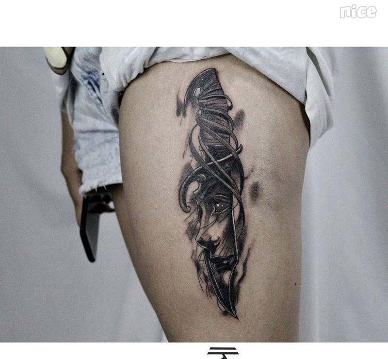 当前位置: 首页 >广东省揭阳市纹身店-元素刺青纹身图案>匕首纹身图片_腿部纹身图案