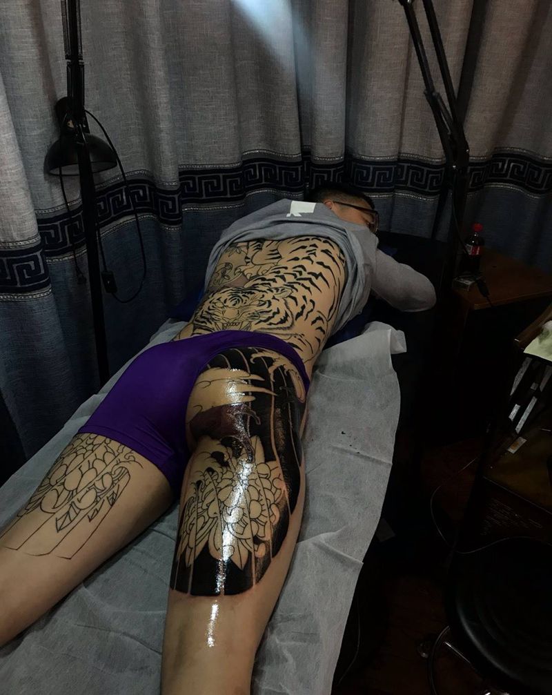 • T网红王老大花腿龙纹身图片_腿部新传统纹身图案