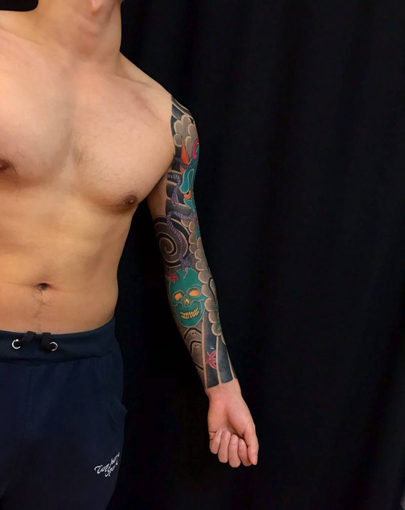 当前位置: 首页 >广西南宁市纹身店-刺客部落纹身纹身图案>般若花臂纹身图片