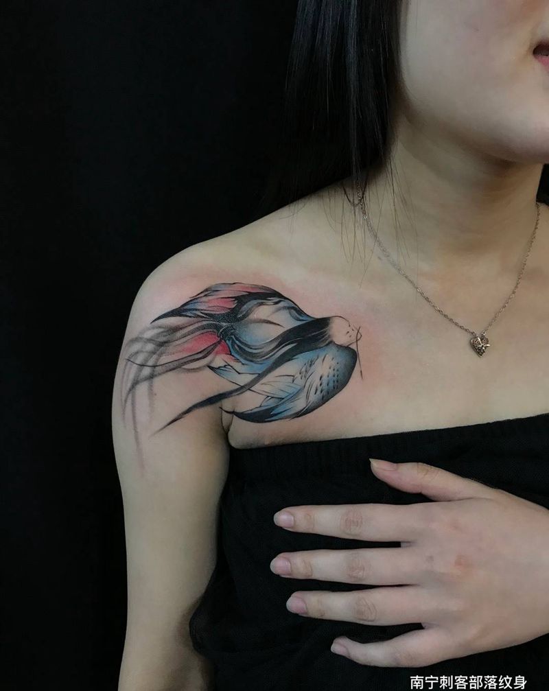 • 纹身吧推荐的披肩图腾半胛纹身图案作品展示
