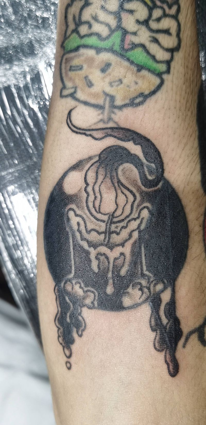 • T包小腿吹火男+阿多福纹身图片_腿部老传统新传统吹火男阿