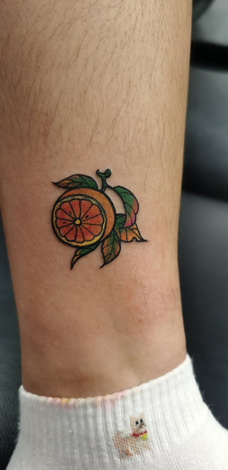 当前位置: 首页 >广西南宁市纹身店-上高铺31号文身馆纹身图案>小血橙纹身图片_腿部脚部New SchoolOld School纹身图案