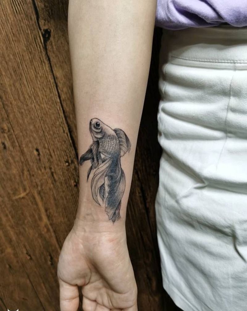金鱼纹身图片_手臂手部金鱼纹身图案
