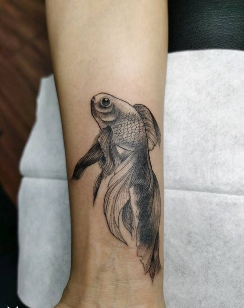 金鱼纹身图片_手臂手部金鱼纹身图案