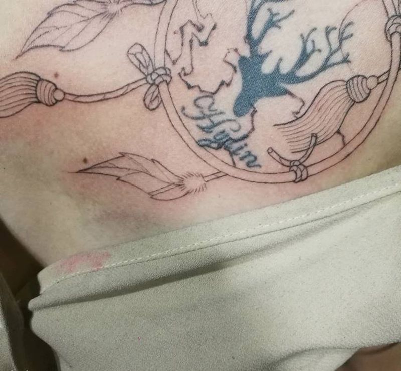 捕梦网式小传统纹身图片_胸部肩部新传统纹身图案