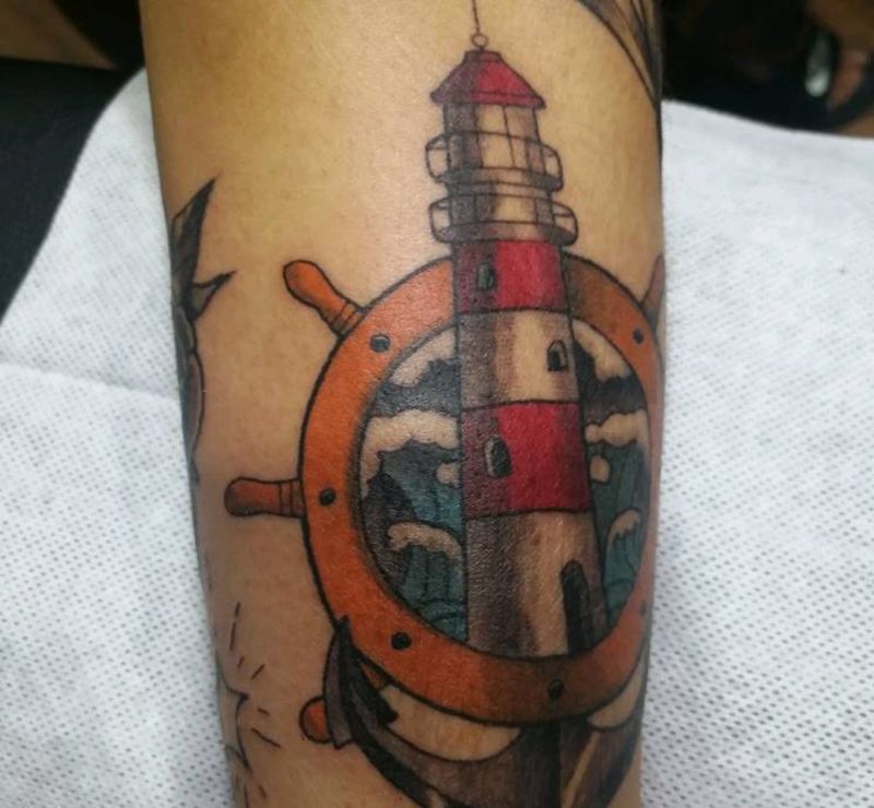 • T包小腿吹火男+阿多福纹身图片_腿部老传统新传统吹火男阿