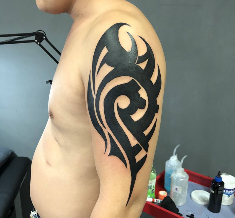 • 纹身吧推荐的披肩图腾半胛纹身图案作品展示