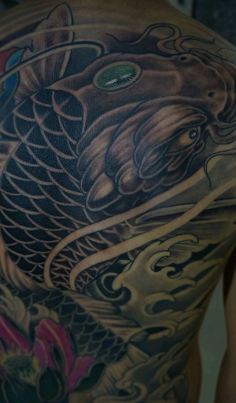 当前位置: 首页 >广西南宁市纹身店-南宁墨影刺青工作室纹身图案>满背:鲤鱼纹身图片_背部肩部新传统老传统纹身图案