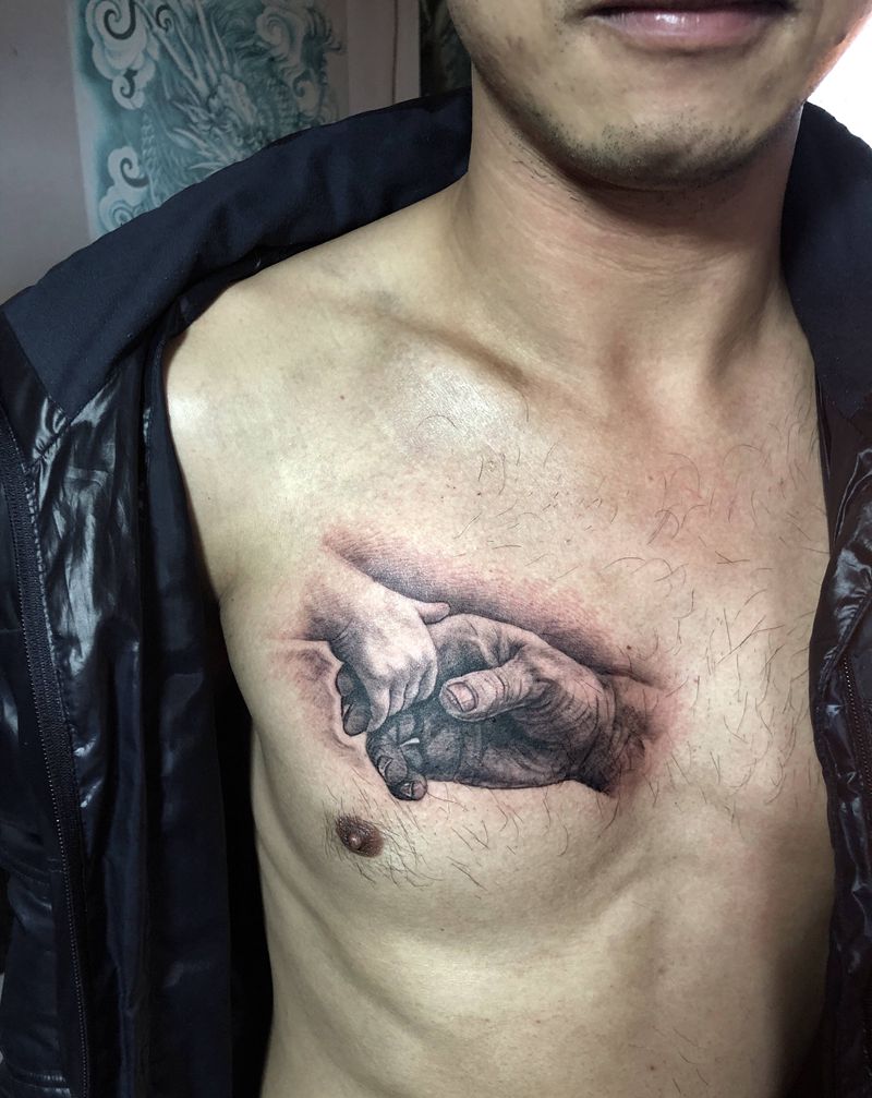 当前位置: 首页 >广西南宁市纹身店-花鬼纹身纹身图案>牵手纹身图片_胸部手臂欧美写实纹身图案
