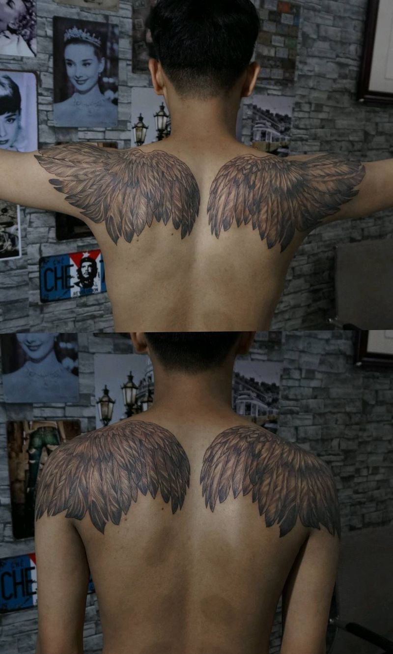 黑灰满背纹身图案