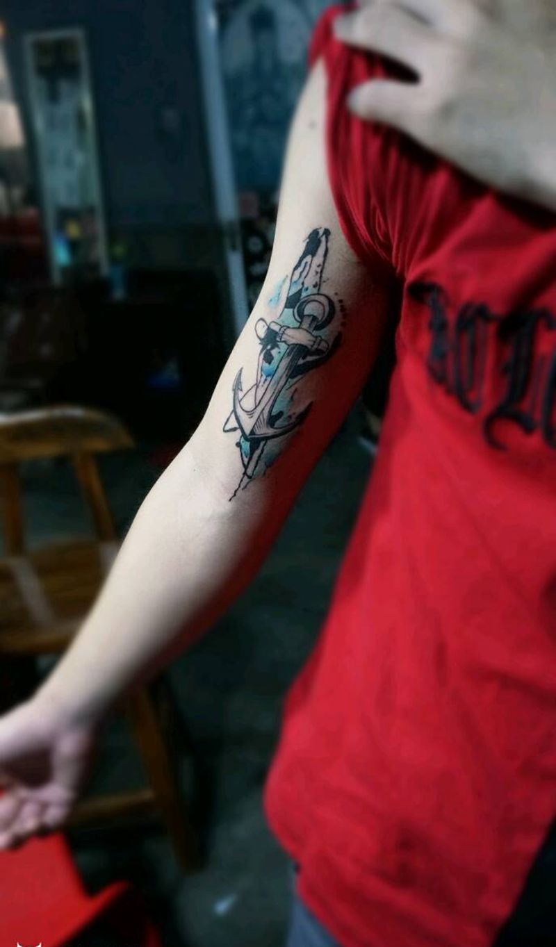 当前位置: 首页 >广西南宁市纹身店-南宁墨影刺青工作室纹身图案>水墨船锚纹身图片