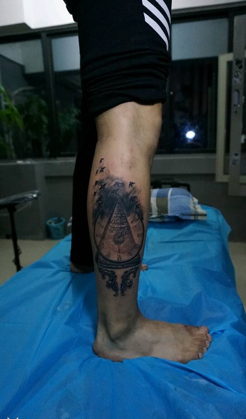 当前位置: 首页 >广西南宁市纹身店-南宁墨影刺青工作室纹身图案>金字塔时钟纹身图片