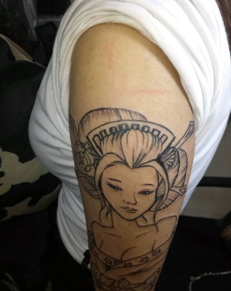 当前位置: 首页 >广西南宁市纹身店-南宁墨影刺青工作室纹身图案>艺妓纹身图片