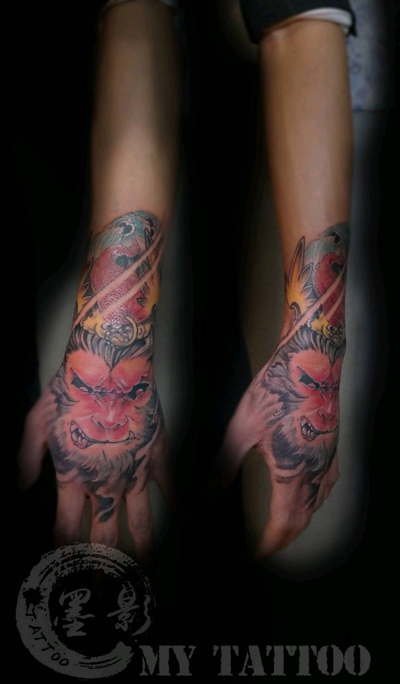 当前位置: 首页 >广西南宁市纹身店-南宁墨影刺青工作室纹身图案>大圣 猴哥 悟空纹身图片_手部新传统大圣纹身图案