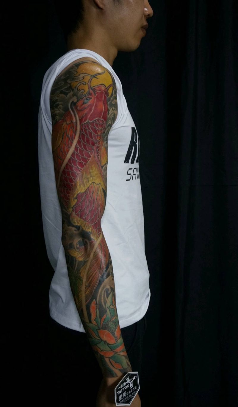 当前位置: 首页 >广西南宁市纹身店-南宁墨影刺青工作室纹身图案>鲤鱼花臂纹身图片_手臂手部新传统老传统纹身图案
