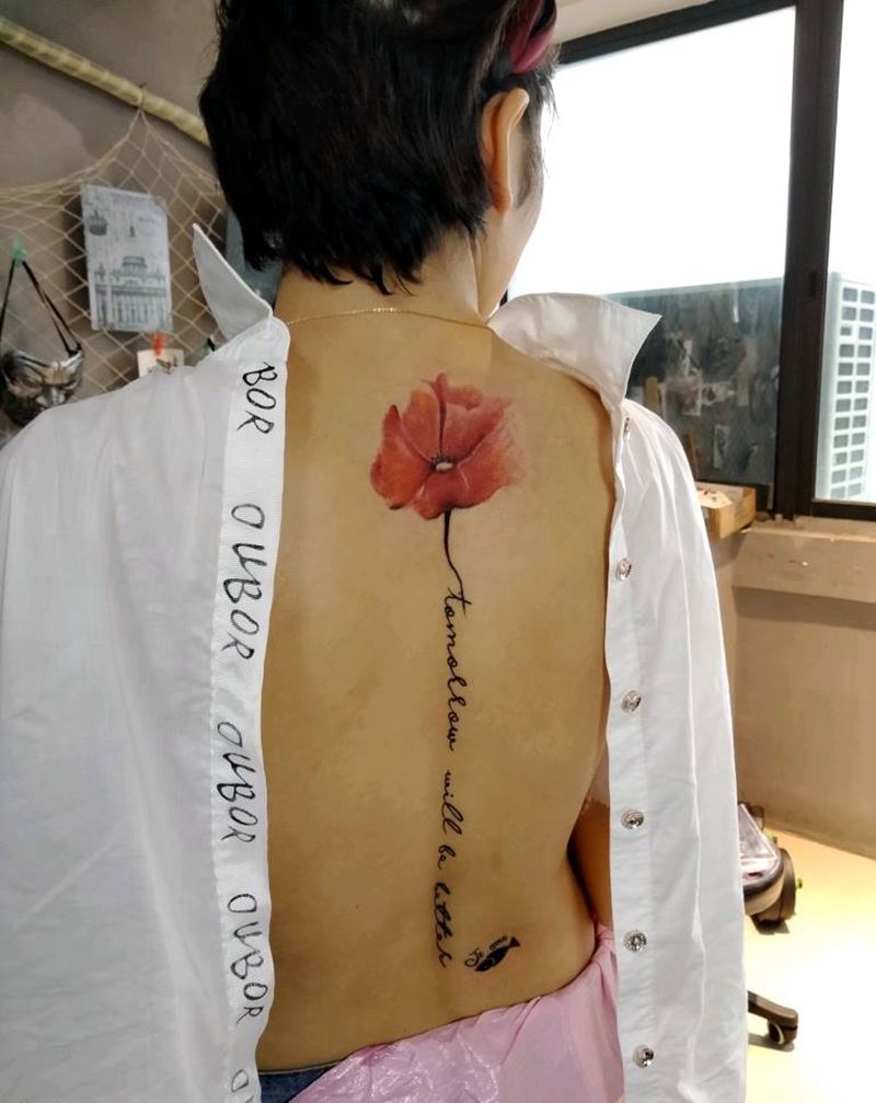 当前位置: 首页 >广西南宁市纹身店-南宁墨影刺青工作室纹身图案>花纹身图片_背部水彩纹身图案