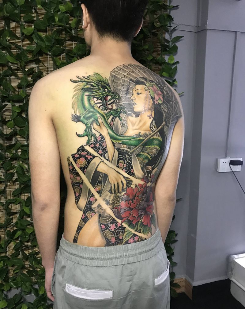 满背艺伎,未完成纹身图片_背部新传统纹身图案