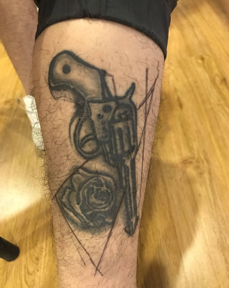 • T包小腿吹火男+阿多福纹身图片_腿部老传统新传统吹火男阿