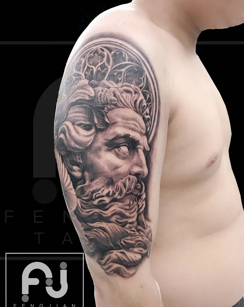 当前位置: 首页 >广东省揭阳市纹身店-风涧•刺青纹身图案>海神:波赛冬纹身图片_手臂欧美写实鸽子信仰纹身图案