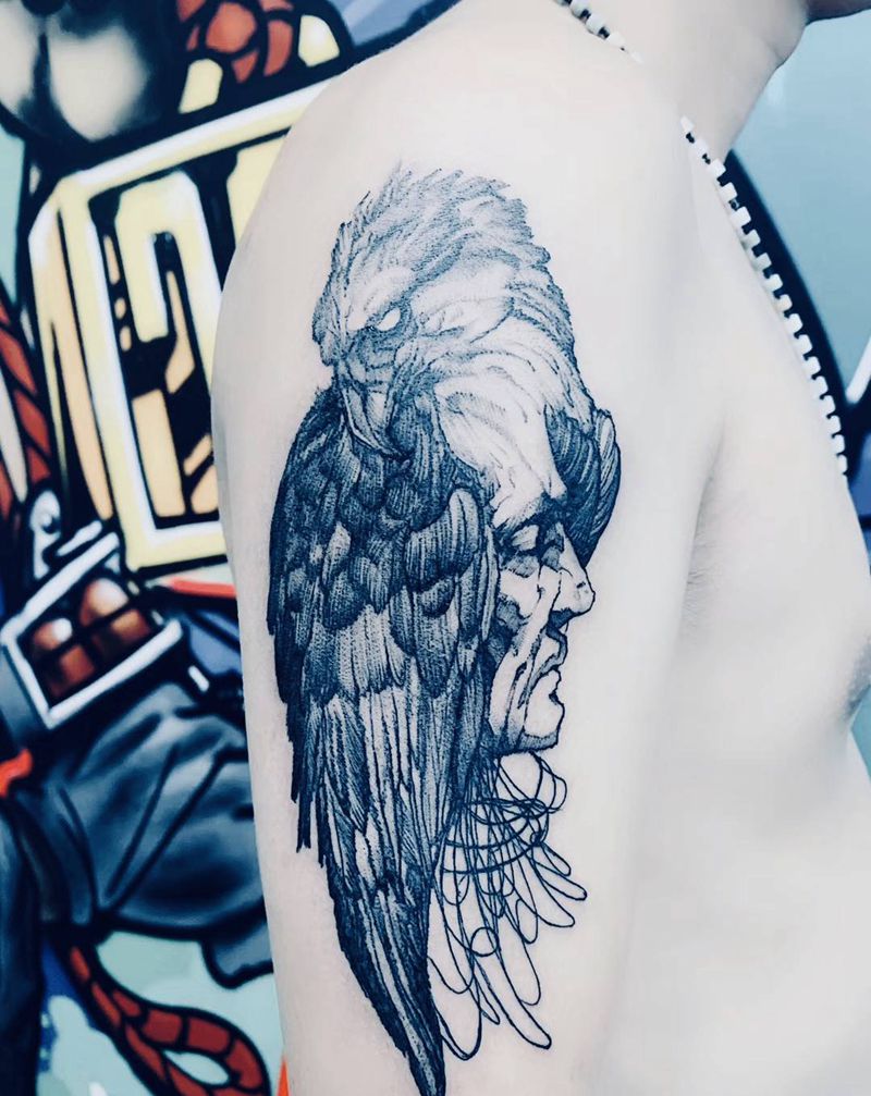 当前位置: 首页 >广西南宁市纹身店-72号刺青馆纹身图案>老人与鹰纹身图片_手臂点刺几何纹身图案