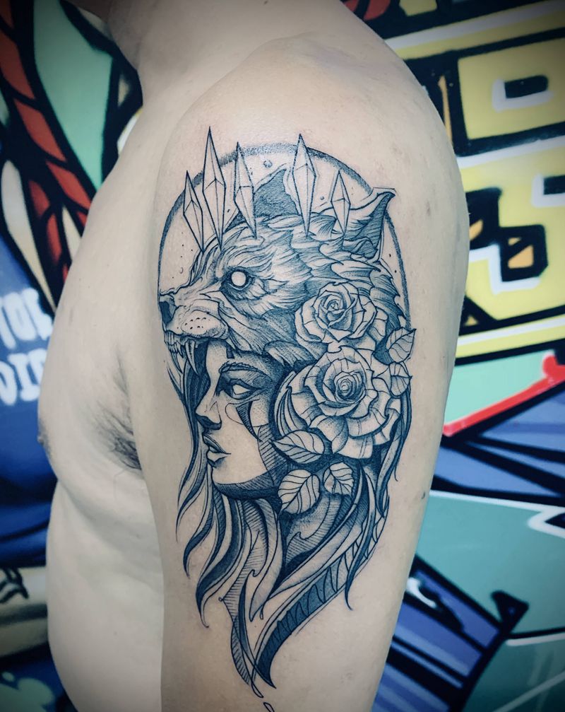 • 纹身吧推荐的披肩图腾半胛纹身图案作品展示