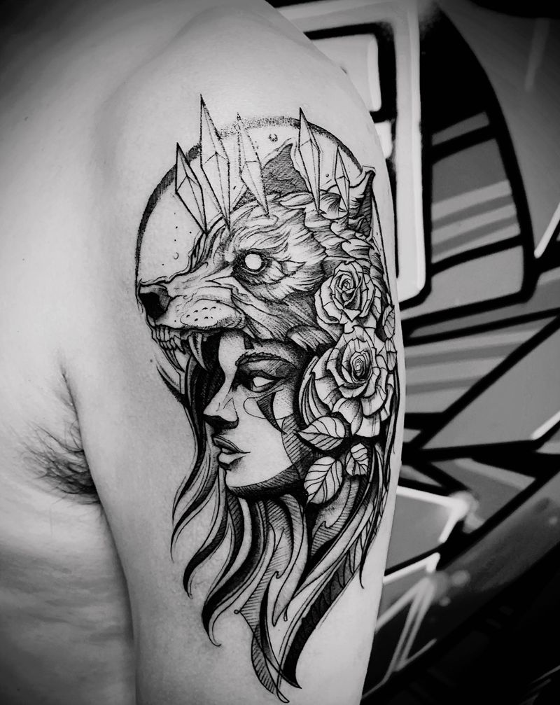 • 纹身吧推荐的披肩图腾半胛纹身图案作品展示