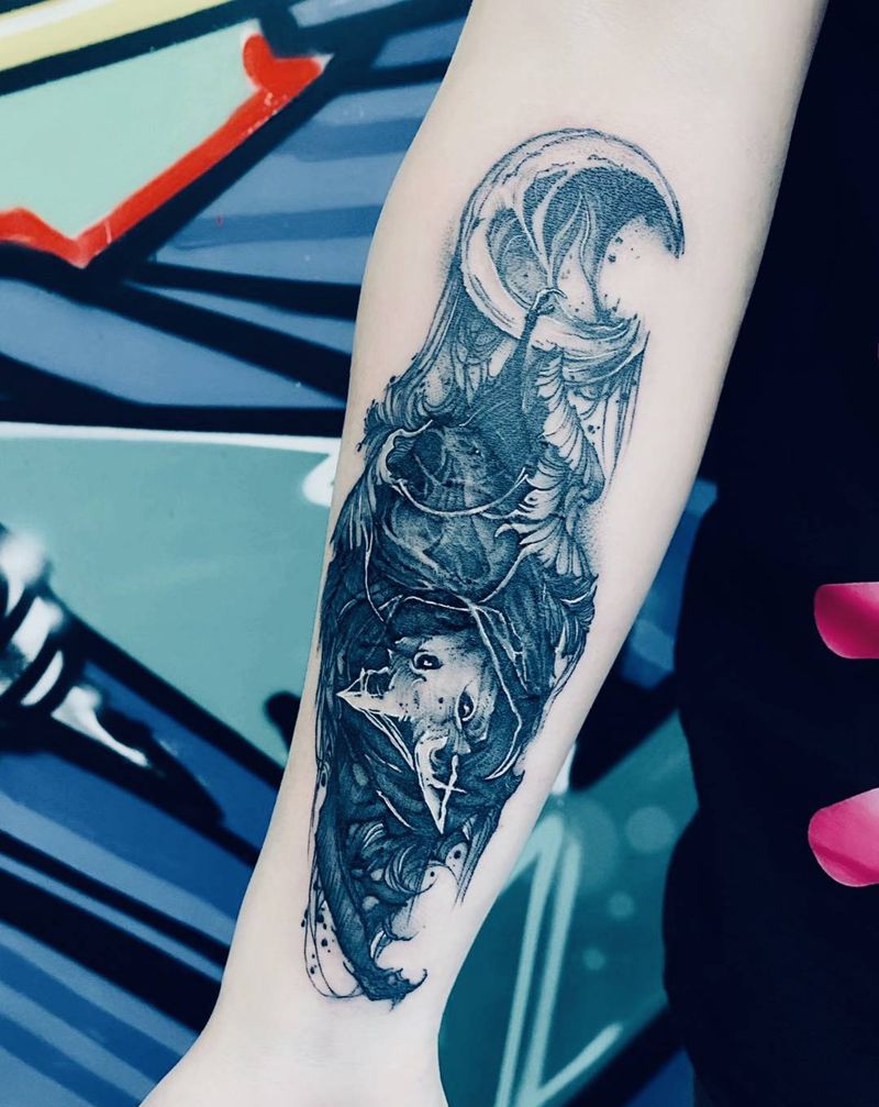 当前位置: 首页 >广西南宁市纹身店-72号刺青馆纹身图案>蝙蝠纹身图片_手臂欧美写实暗黑纹身图案