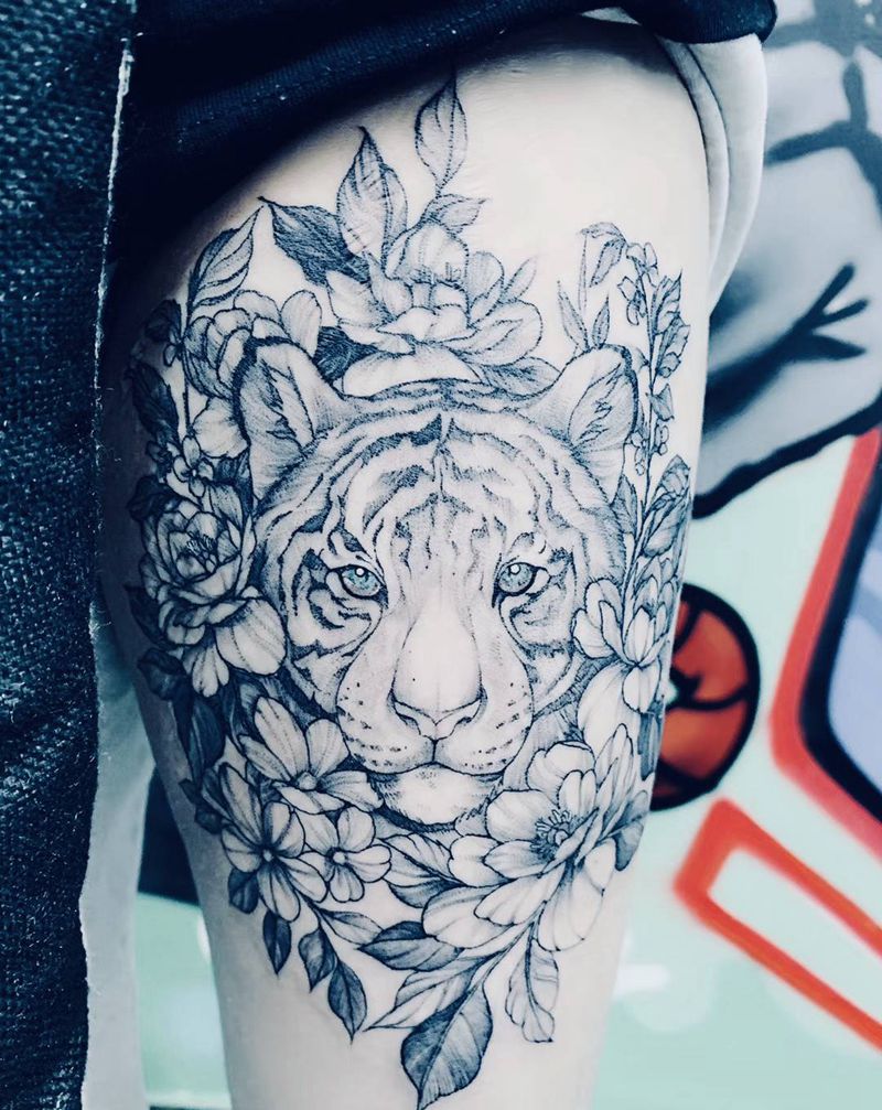 当前位置: 首页 >广西南宁市纹身店-72号刺青馆纹身图案>素花老虎纹身图片_腿部点刺纹身图案