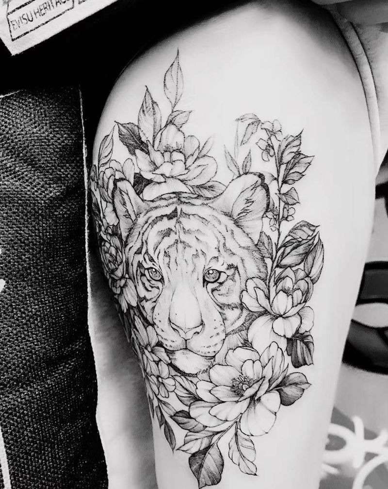 当前位置: 首页 >广西南宁市纹身店-72号刺青馆纹身图案>素花老虎纹身图片_腿部点刺纹身图案