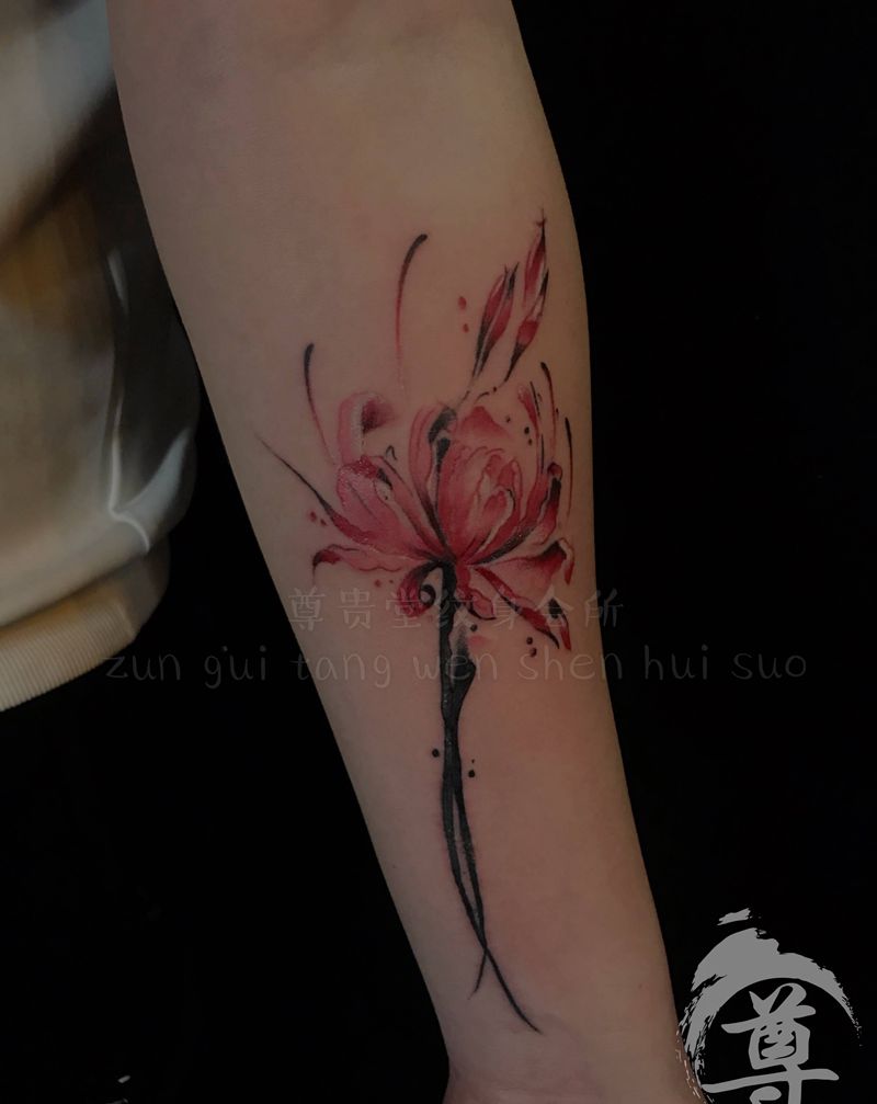 今日唐狮 彼岸花纹身图片_手臂脚部老传统水彩纹身图案