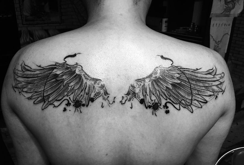 • 纹身吧推荐的披肩图腾半胛纹身图案作品展示