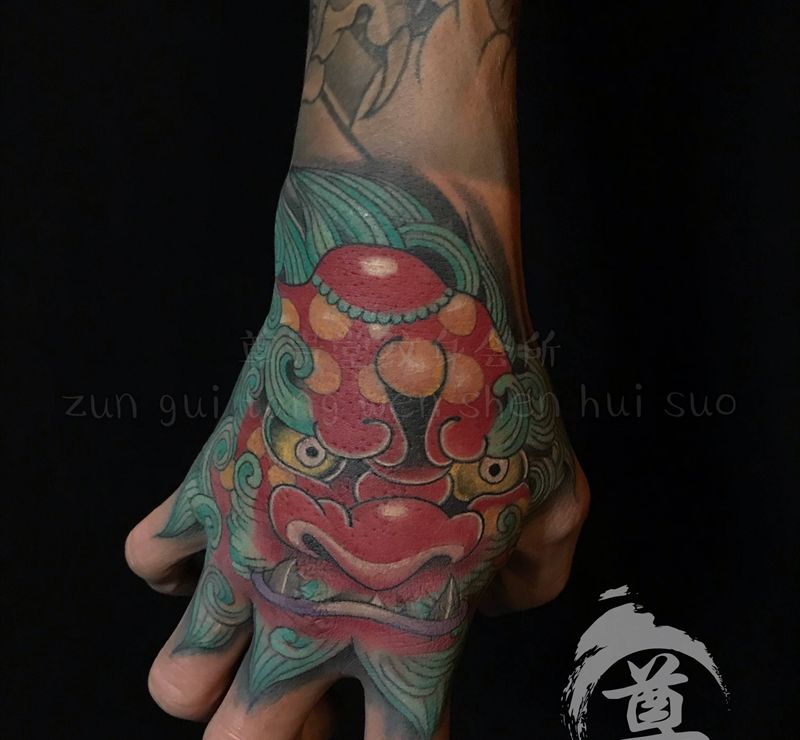 当前位置: 首页 >广东省揭阳市纹身店-揭阳尊贵堂纹身会所纹身图案>手背唐狮纹身图片_手部老传统纹身图案