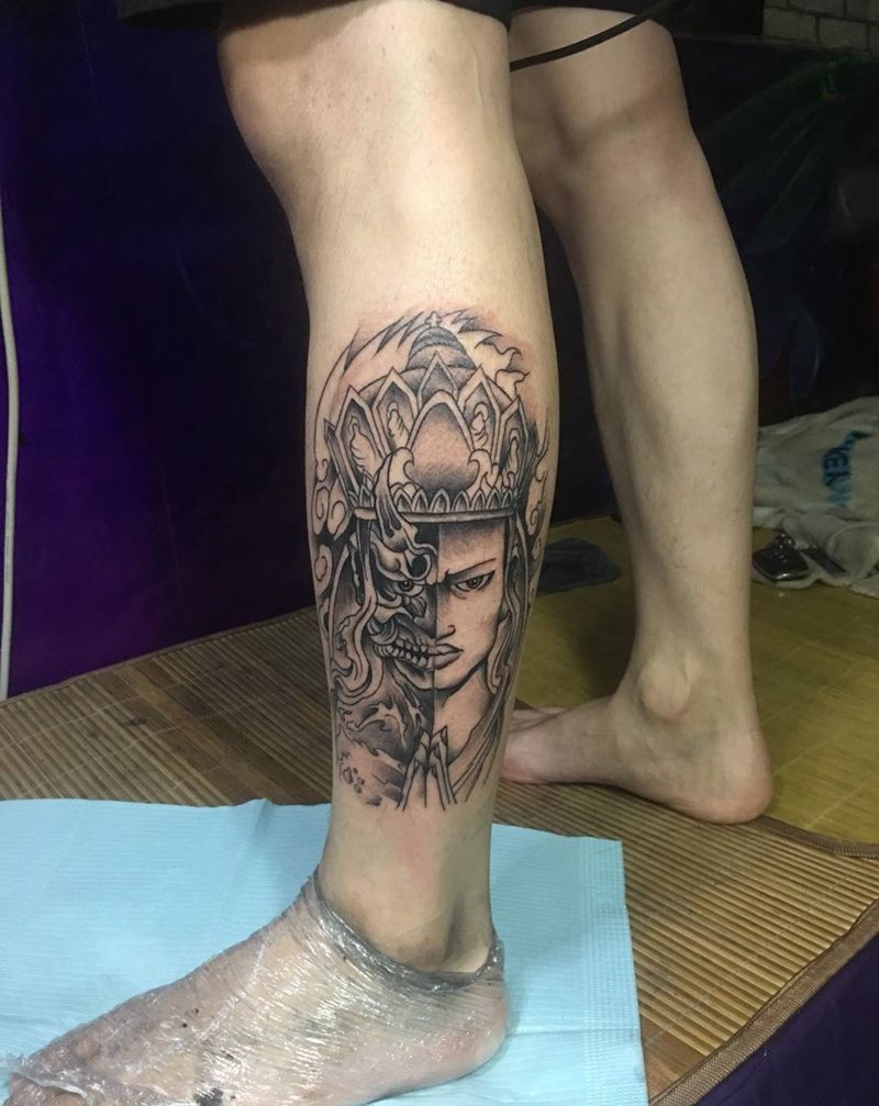 • T网红王老大花腿龙纹身图片_腿部新传统纹身图案