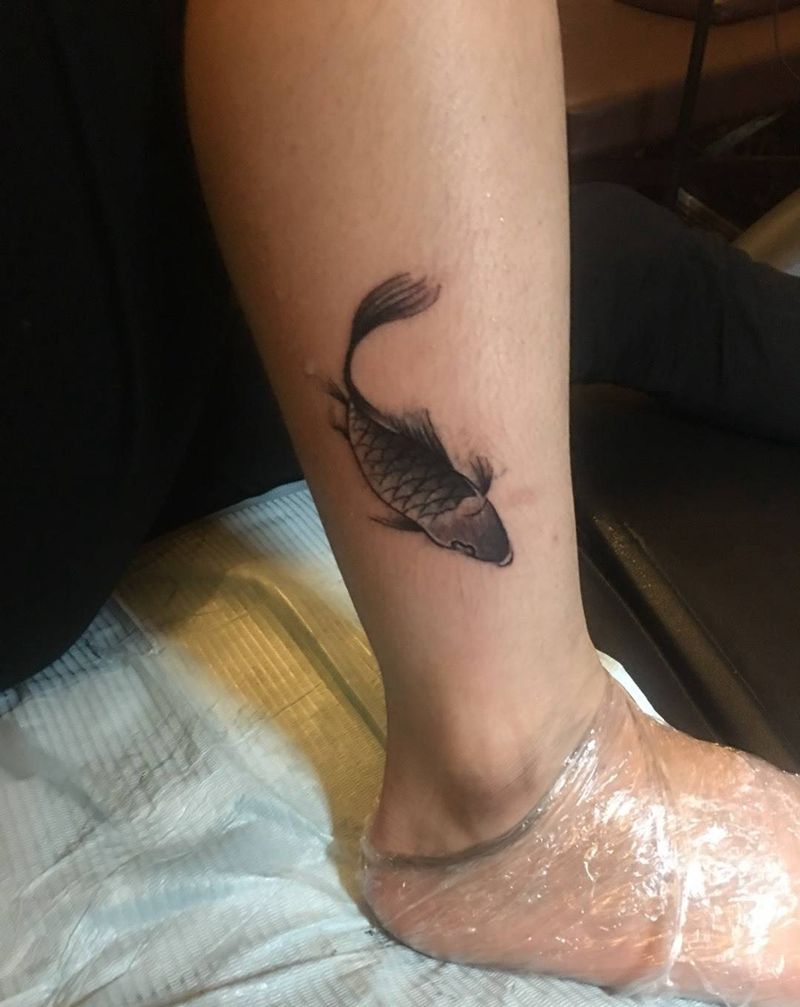 当前位置: 首页 >广东省揭阳市纹身店-揭阳尊贵堂纹身会所纹身图案>水墨小锦鲤盖小图纹身图片