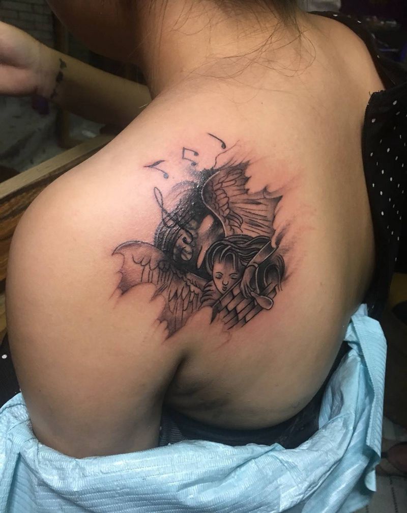 美女天使。纹身图片